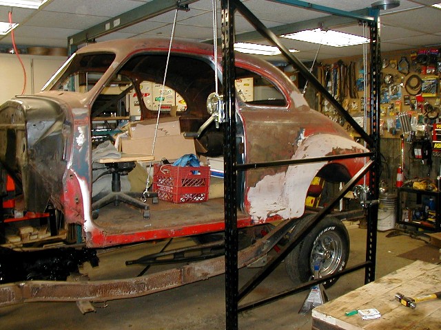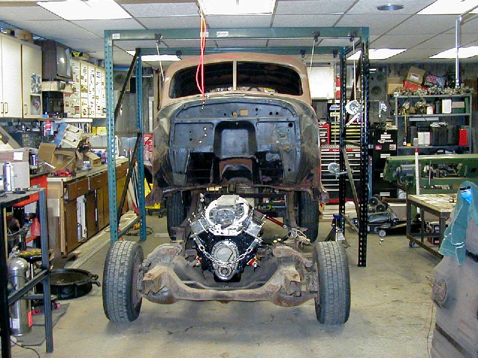 We set the body on to see how it fits.  Check out the cool lifting jig.