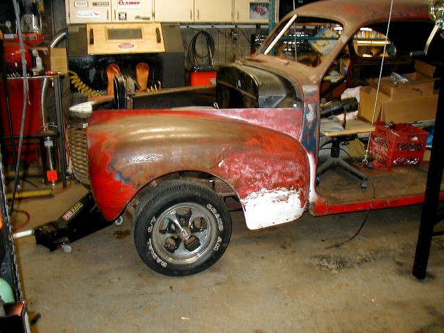 The body and the front clip are on and its time to see how the motor lines up to the fire wall. hopefully it will be close.