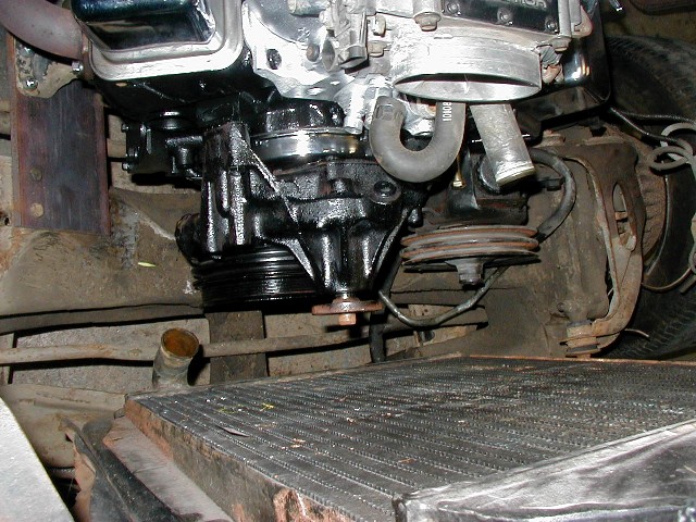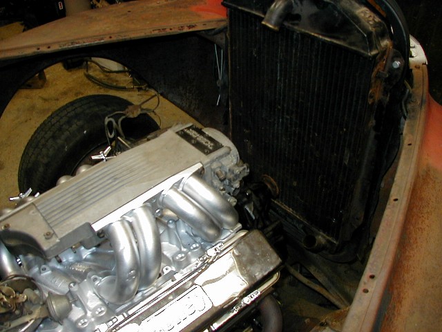 Clearances from the front of the motor to the radiator are better.  This will definitely be an electric fan project.  After all this, everything will need to come off and get ready to put the final touches on the tranny mount and the rear end torque arm.